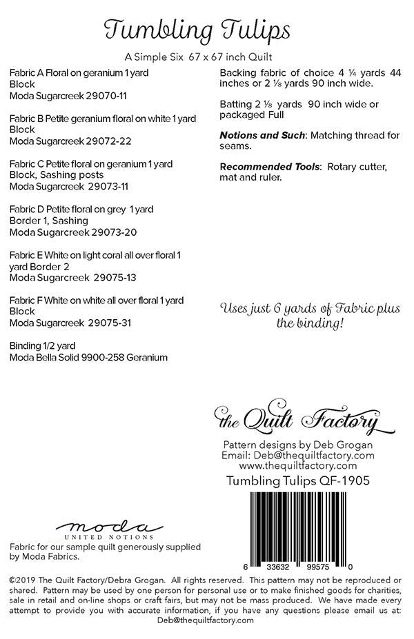 Quilt Factory TUMBLING TULIPS Simple 6 Pattern